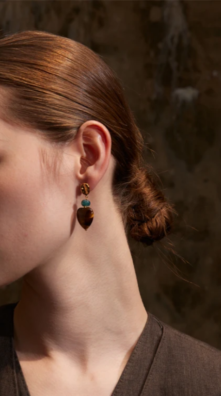 Boucles d'oreilles Coeur/Pierre naturelle