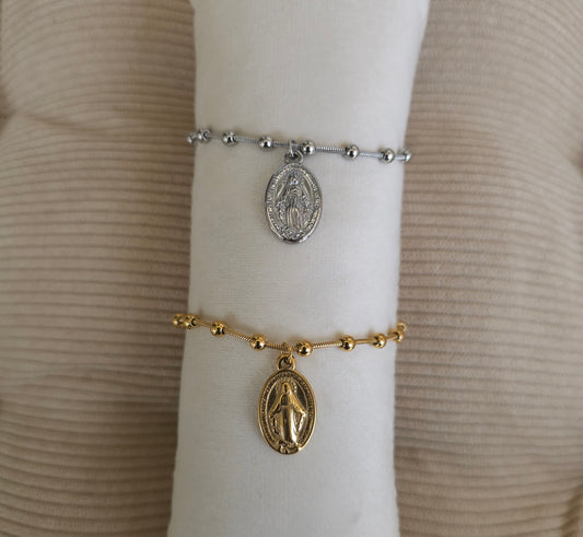 Bracelet médaille Vierge Miraculeuse - Doré