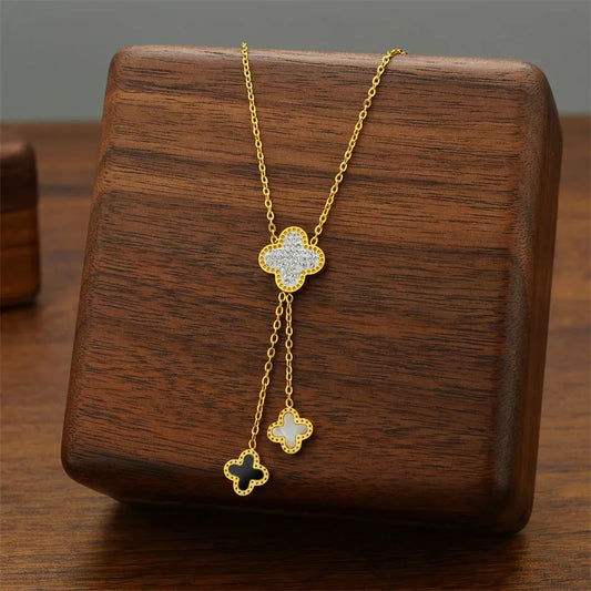 Collier Trèfle strass pendant
