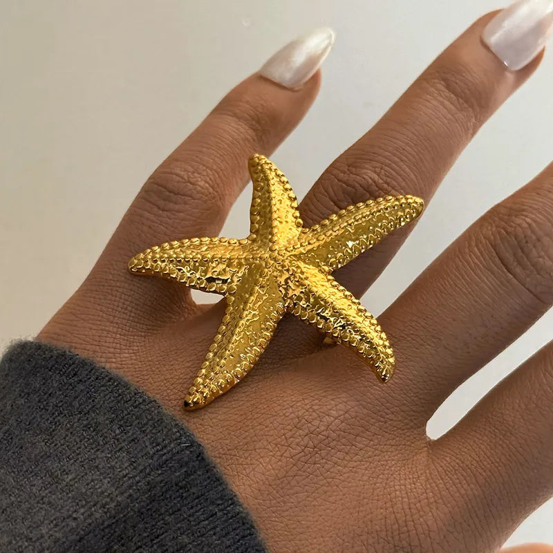 Bague étoile de mer en acier inoxydable et plaqué or 18k